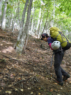 最近、小川山で講習する際は、なるべくお客様に前を歩いていただくことにしております。なぜなら、小川山の岩探しは難しいから。