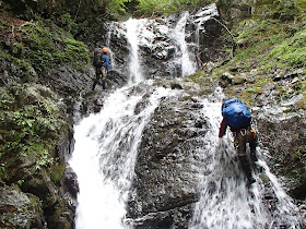 <20m級の大滝登攀。2日目のハイライト>